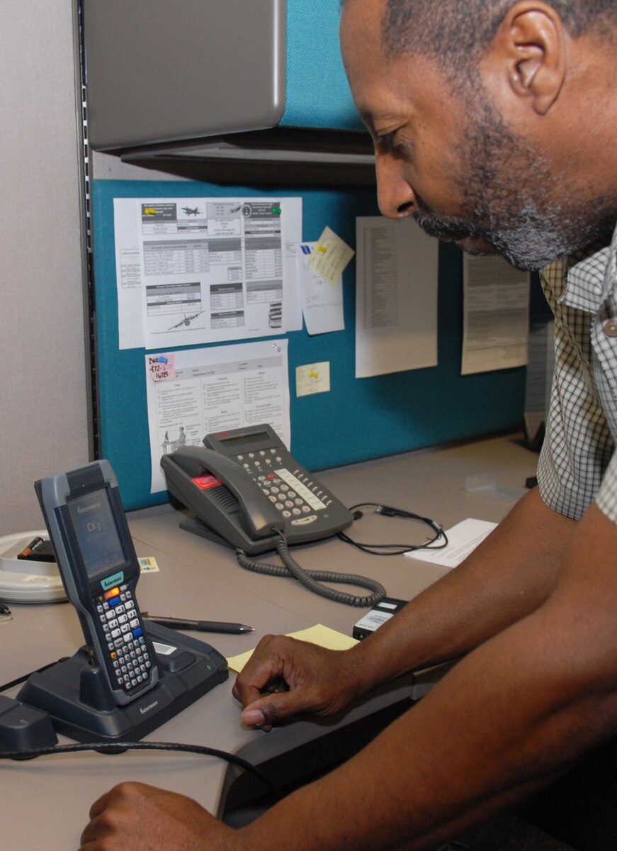 ‘Cradle to grave’ Item ID system back up and tracking Published June 13, 2014 By Brian Shreve Robins Publick Affairs ROBINS AIR FORCE BASE, Ga. -- Keeping tabs on every single piece of equipment used by the world's largest Air Force may sound like a gargantuan task. That's because it is. But, David Burton and his cohorts are working to make that process much easier at Robins. A new labeling technique that uses hand-held terminals to create a unique identification code for all base items is back up and running after facing some setbacks, according to Burton, 78th Logistics Readiness Squadron Materiel Management flight chief. The process of distinguishing each item at Robins from any other in the Air Force inventory began in 2012 and is roughly 60 percent complete after being delayed for about a year due to software issues. "With this, we're able to track any piece of equipment from cradle to grave," said Burton. "Once a label is put on an item, it stays on it, whether it goes to distribution services or is transferred to another user. Now that we've gotten connectivity back, we're going to be finishing up the other items on base." Why is that so important? The new system greatly improves accountability and data reliability in tracking assets, providing complete "visibility" of an item, such as where something came from, who it belongs to and, perhaps most important, where it is in the event a piece of equipment is not found during inventory, Burton said. Resembling a considerably more sophisticated version of a grocery store scanning device, the hand-held terminals store serial, stock and part numbers, as well as the manufacturer of an item. Though no bigger than a penny, that information can be read from each label, or unique item identifier, with a swipe of the terminal. "Even if a UIID is damaged, the label will not change," said Burton. "We would (simply) have to order a duplicate of that particular label. It's forever."